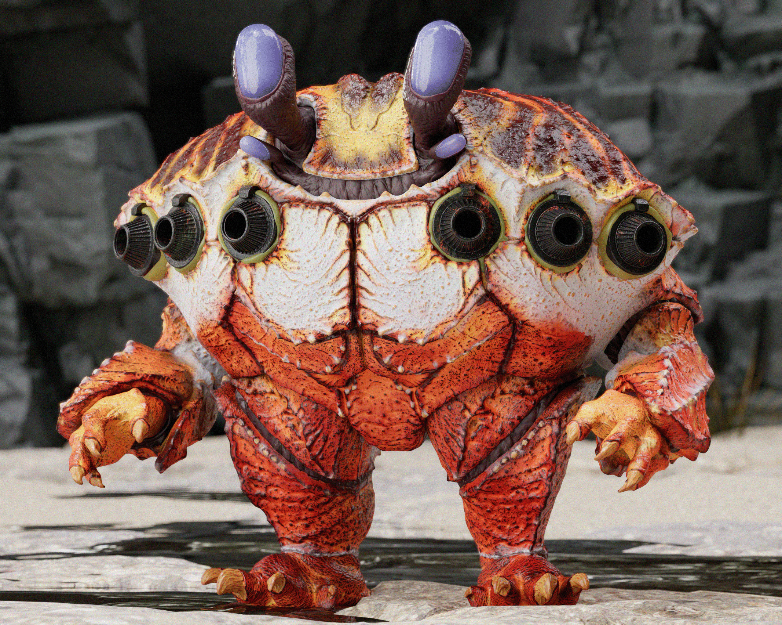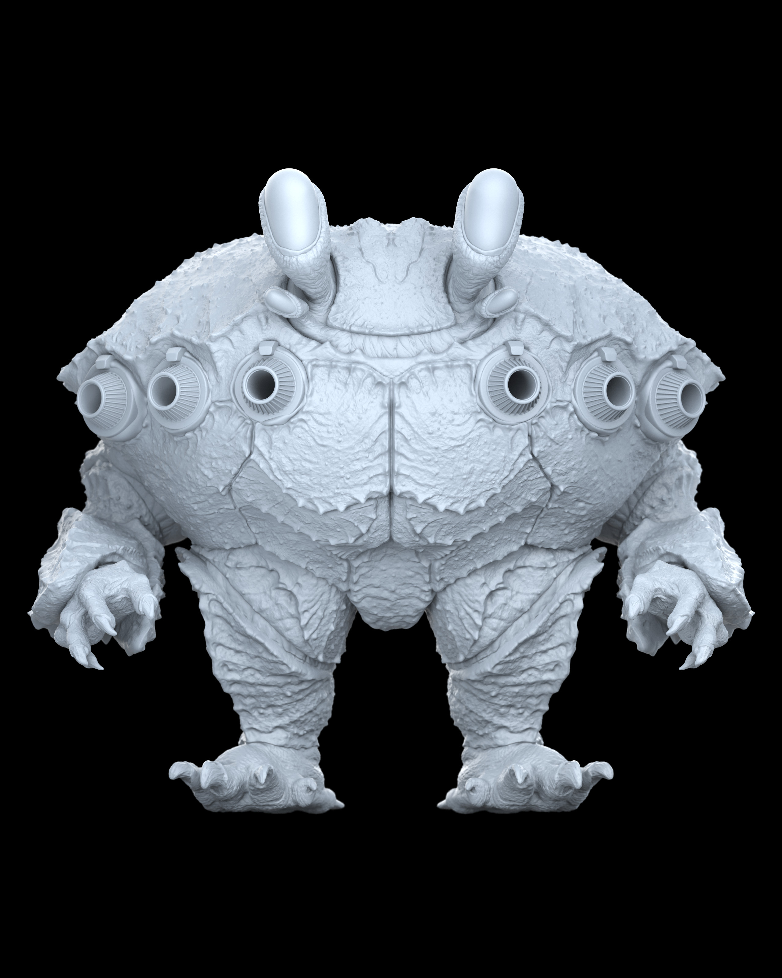 Born the smallest in his cast of siblings, Kitonga yet grew to be the mightiest of them all. Left to drift alone during his families migration, he would eventually be swept ashore on an island of shipyards and factories. Foraging among the abandoned machinery Kitonga came into contact with mutagenic sludge, a chemical offput from the various industrial plants. By his prolonged exposure to radiation he would eventually grow to massive size and come to be known as The Wave Breaker, for his fierce defence of his toxic island home.