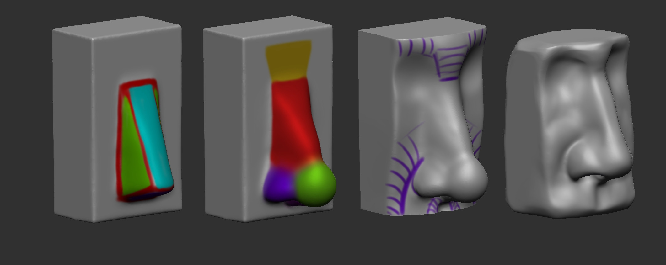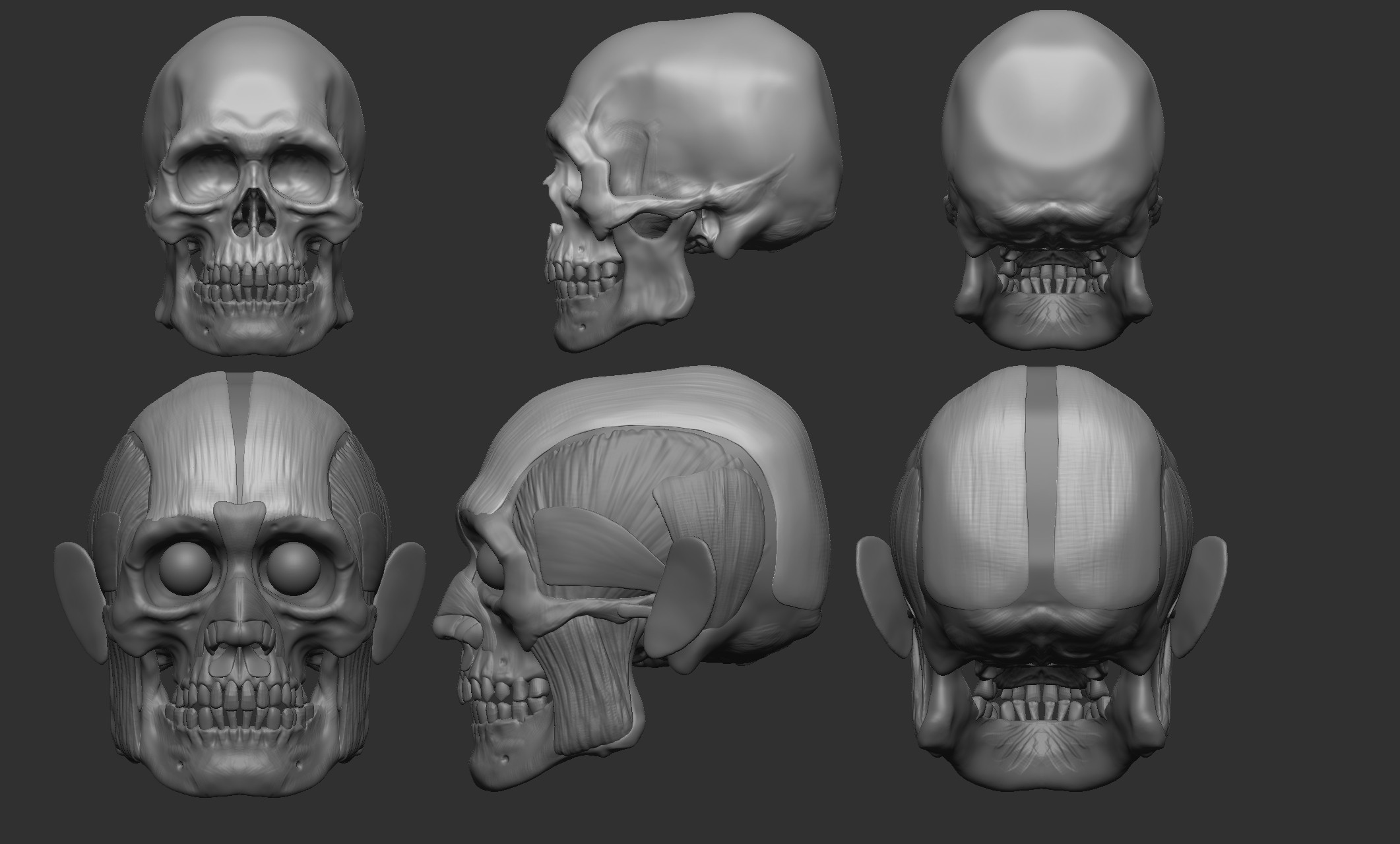 Screengrabs, renders and snippets from Head Sculpting Class demos that I've run at various CG Training schools. Most are fairly rough, and that's the whole point. We don't focus overly much on final polish, but rather the Artistic building blocks that makeup a portrait, and setup a compelling likeness.